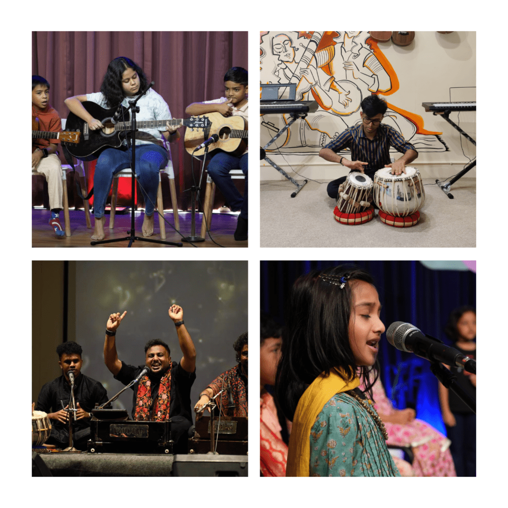 - Carnatic Vocals: Voice culture, kritis, swaras, and disciplined classical structure